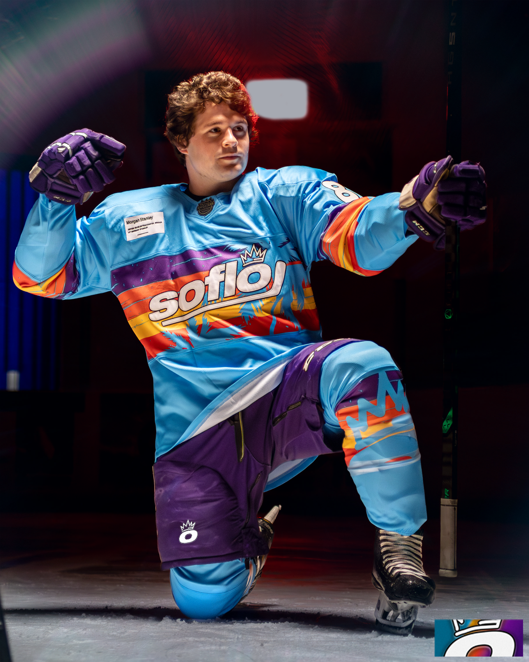 The 2024 summer season for the SOFLO Hockey organization included the release of a new set of team uniforms, with the project being titled “New Era.” As the creative director for the project, I was fortunate enough to lead a team of talented visual artists to help showcase five new uniforms that exude a retro South-Florida feel with modern twists.